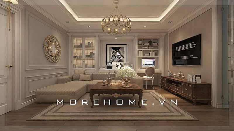 Thiết kế nội thất phòng khách biệt thự theo phong cách tân cổ điển sang trọng và cao cấp.